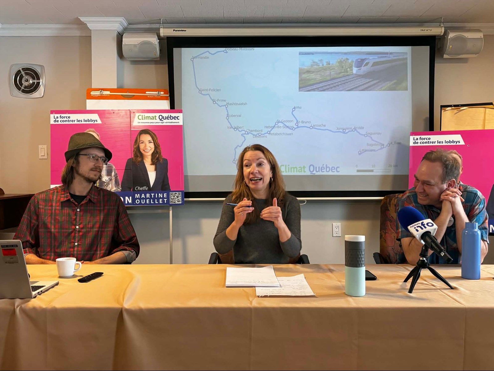 La cheffe de Climat Québec, Martine Ouellet, et le candidat aux élections partielles dans Chicoutimi, Olivier Dion, ont présenté aujourd’hui en conférence de presse le Train des Bleuets, un projet de réseau ferroviaire interurbain visant à améliorer la mobilité, l’économie et le développement régional du Saguenay–Lac-Saint-Jean.