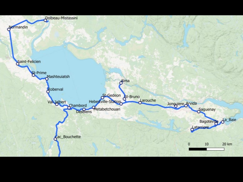 Vingt et une gares seraient aménagées de Dolbeau-Mistassini à La Baie, en passant par Roberval, afin de desservir l’intégralité de la région.